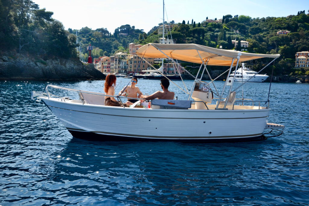 Here you can enjoy your first stop: a coffee while admiring the famous piazzetta from the sea, or a loop around Portofino’s bay to photograph the pastel-colored houses from the water.